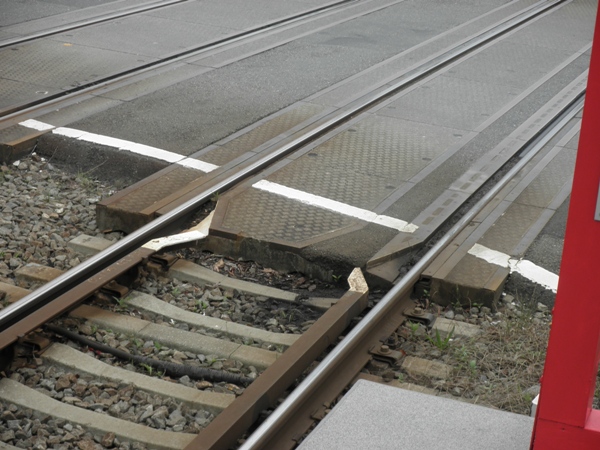元々JRの貨物が入っていた際に三線軌条になっていた名残があった。