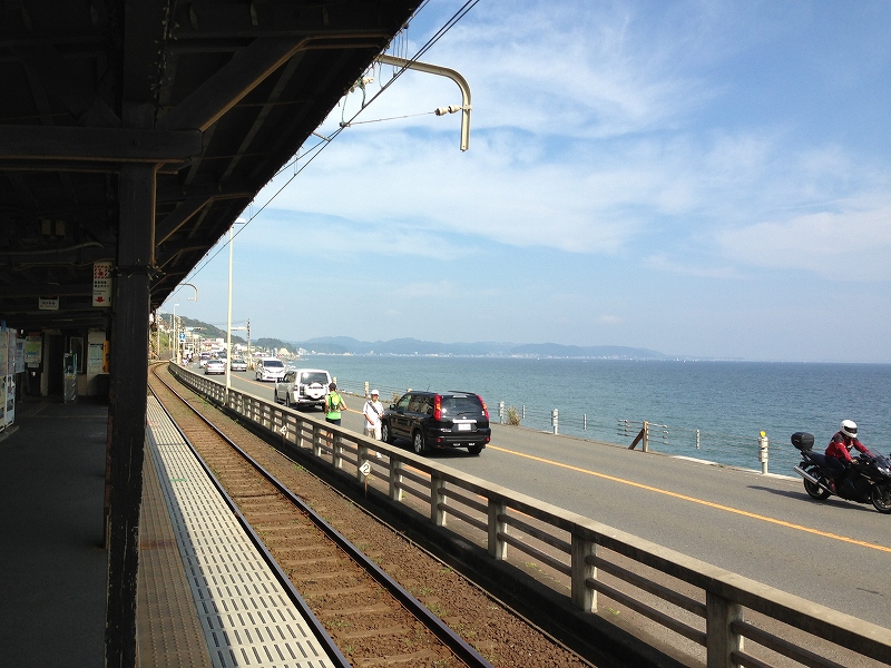 次の鎌倉高校前もぜひ降りたい駅なのだが、この調子で行くと一区間ずつ乗っては降りることを繰り返すことになってしまうので、ひとまず通過することにする。この区間は相模湾沿いを走るために、海がよく見える。