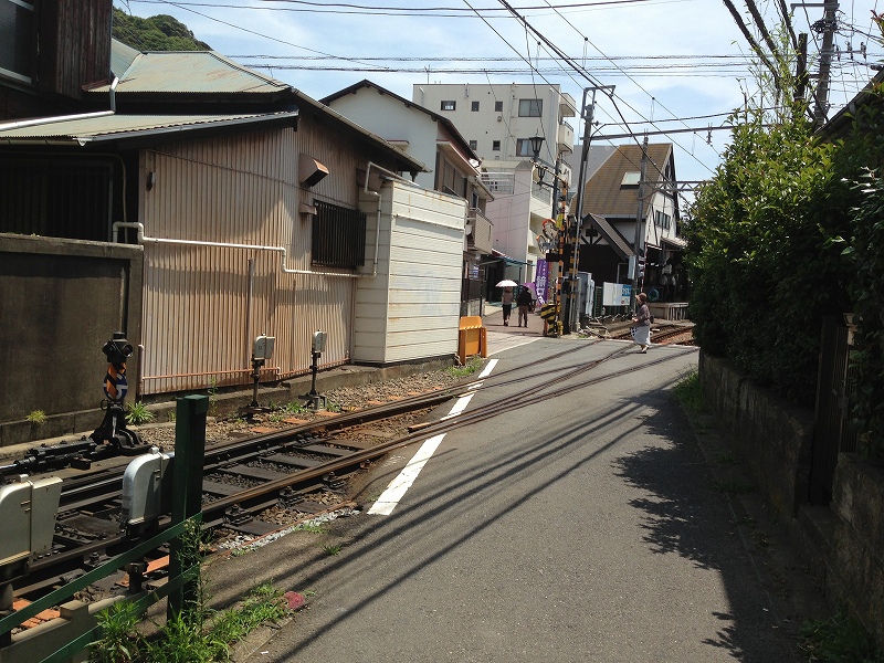 湘南モノレールの終点、湘南江の島駅を降りると目の前に江ノ電の江ノ島駅がある。小田急江ノ島線の片瀬江ノ島駅から江ノ島駅までは徒歩10分ほどかかるのとは対照的である。江ノ島電鉄は鉄道線ながら、路面電車的な雰囲気が随所にみられる。その一つに、変わった踏切が多いという点がある。元々併用軌道であったものを無理に専用軌道化した区間があるので、変なところで線路を渡る必要が生じている個所が多い。