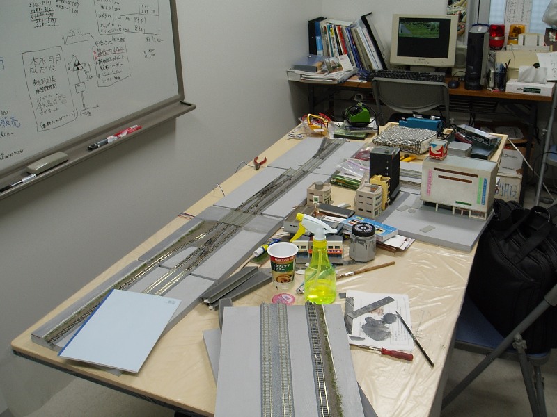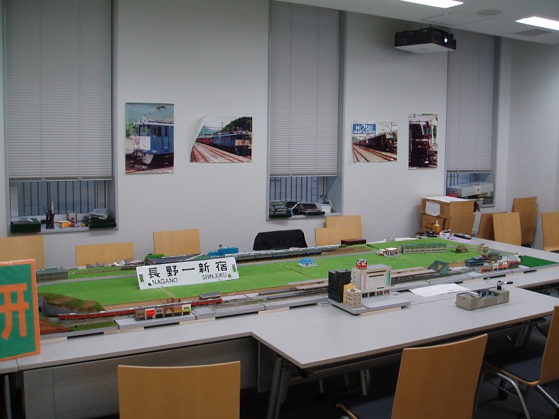 Nゲージレイアウトの全景。真ん中に居座っているサボが、ひそかな話題を呼んだとか。