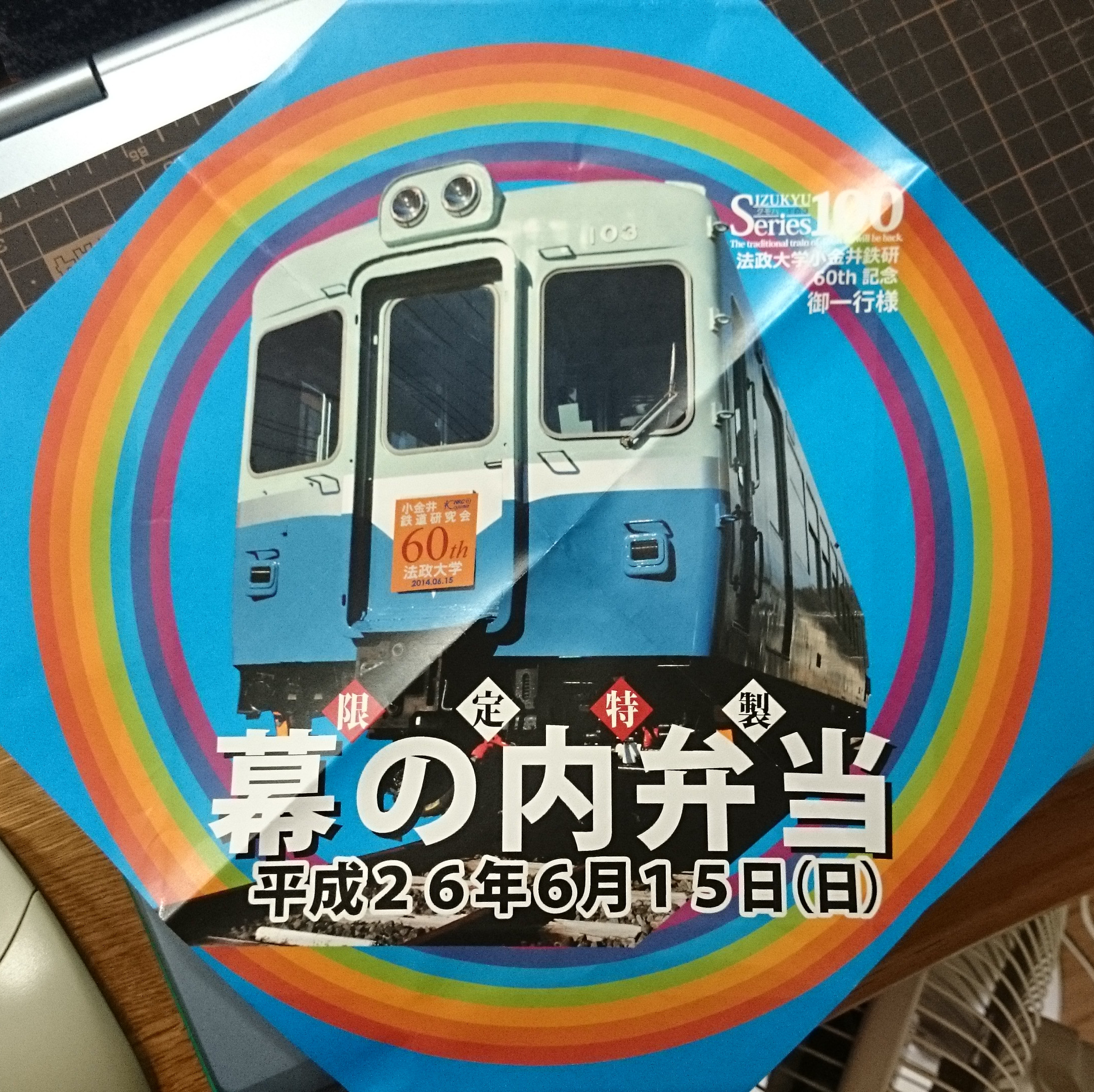 弁当の掛け紙。当会作成のヘッドマーク付きの写真です。