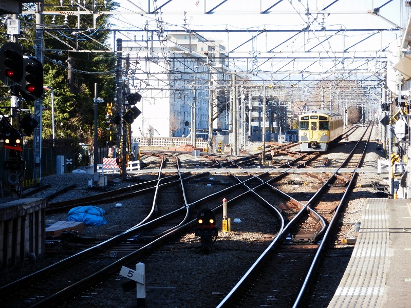 萩山駅では拝島線と多摩湖線は平面交差となっています。